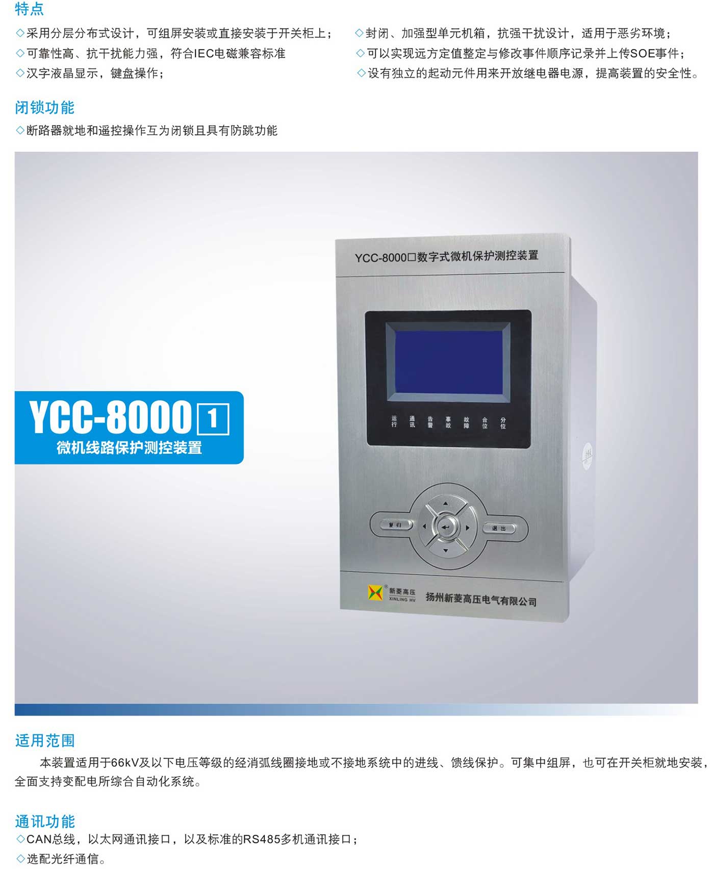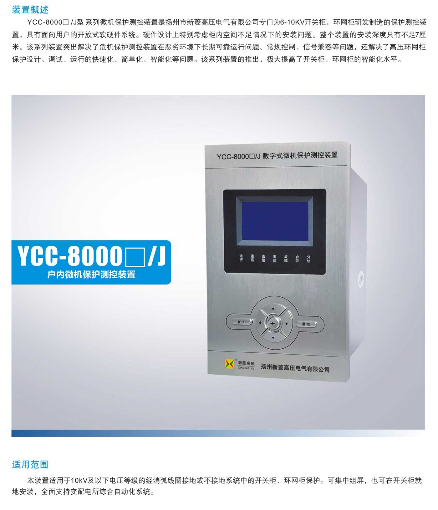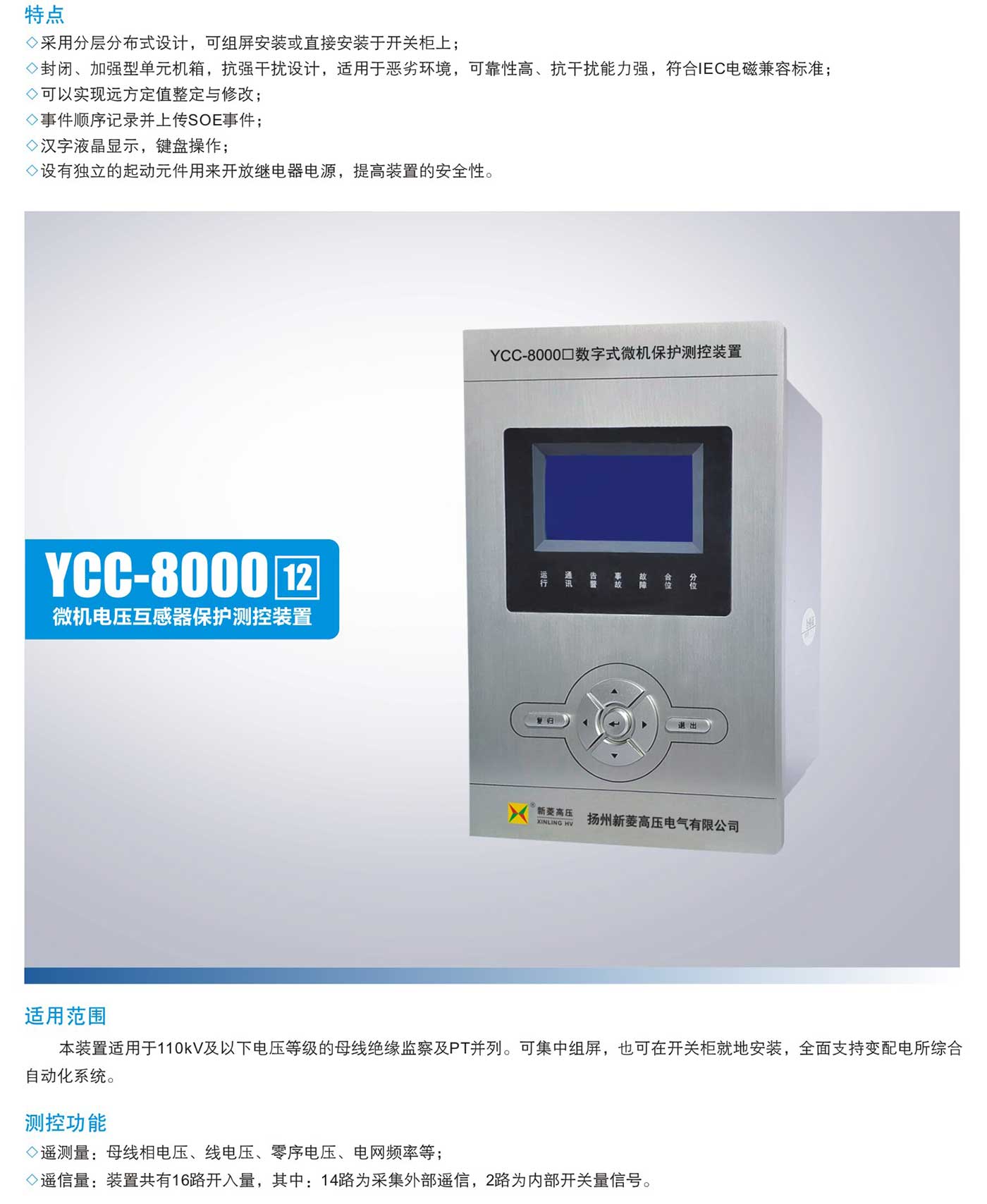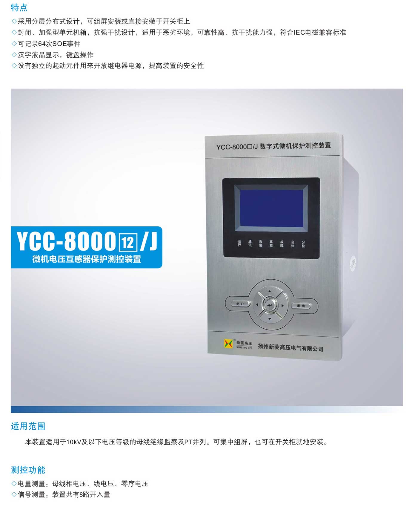 YCC-8000口/J户内微机保护测控装置