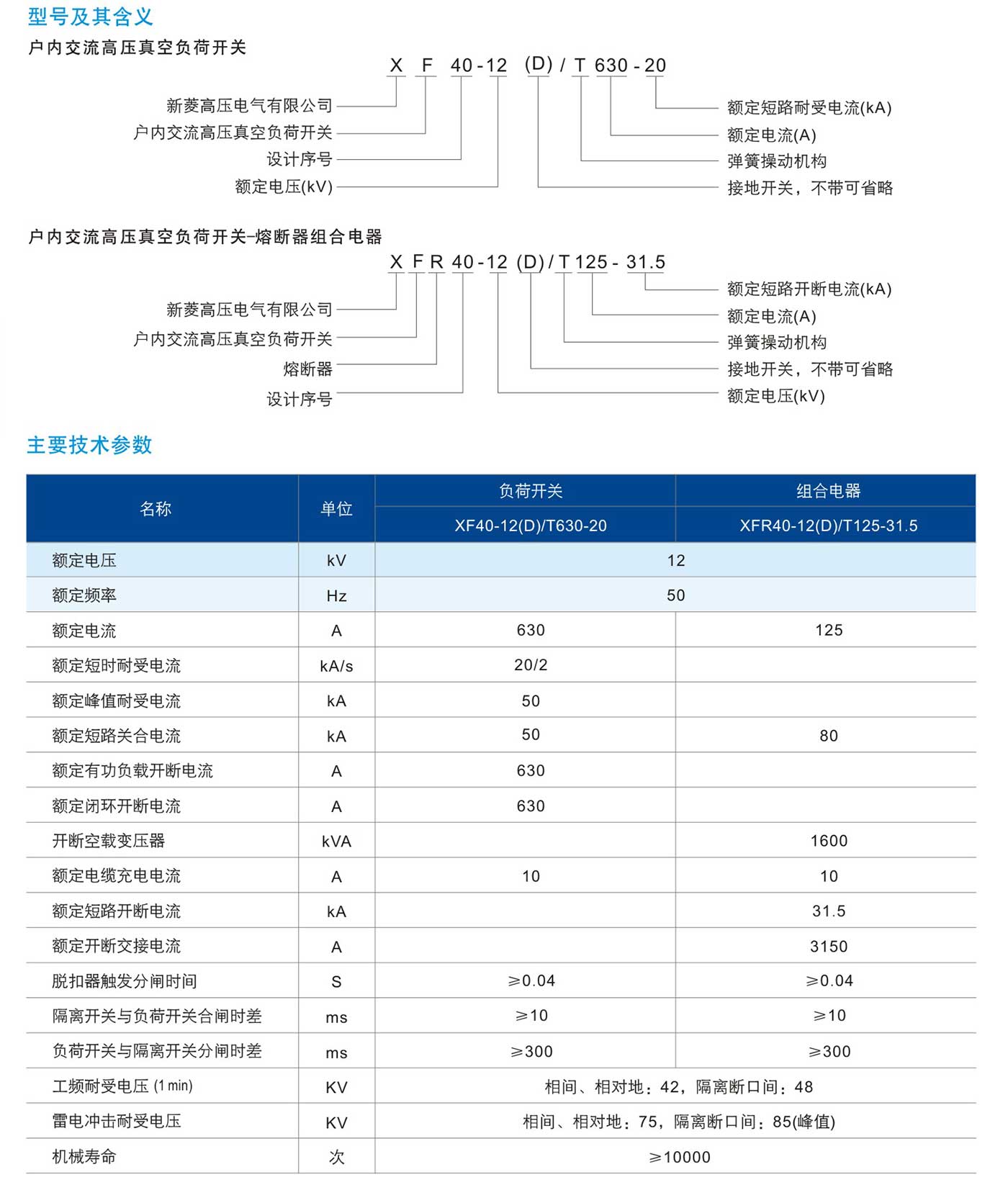 XF(R)40-12(D)/T630-20型户内高压真空负荷开关