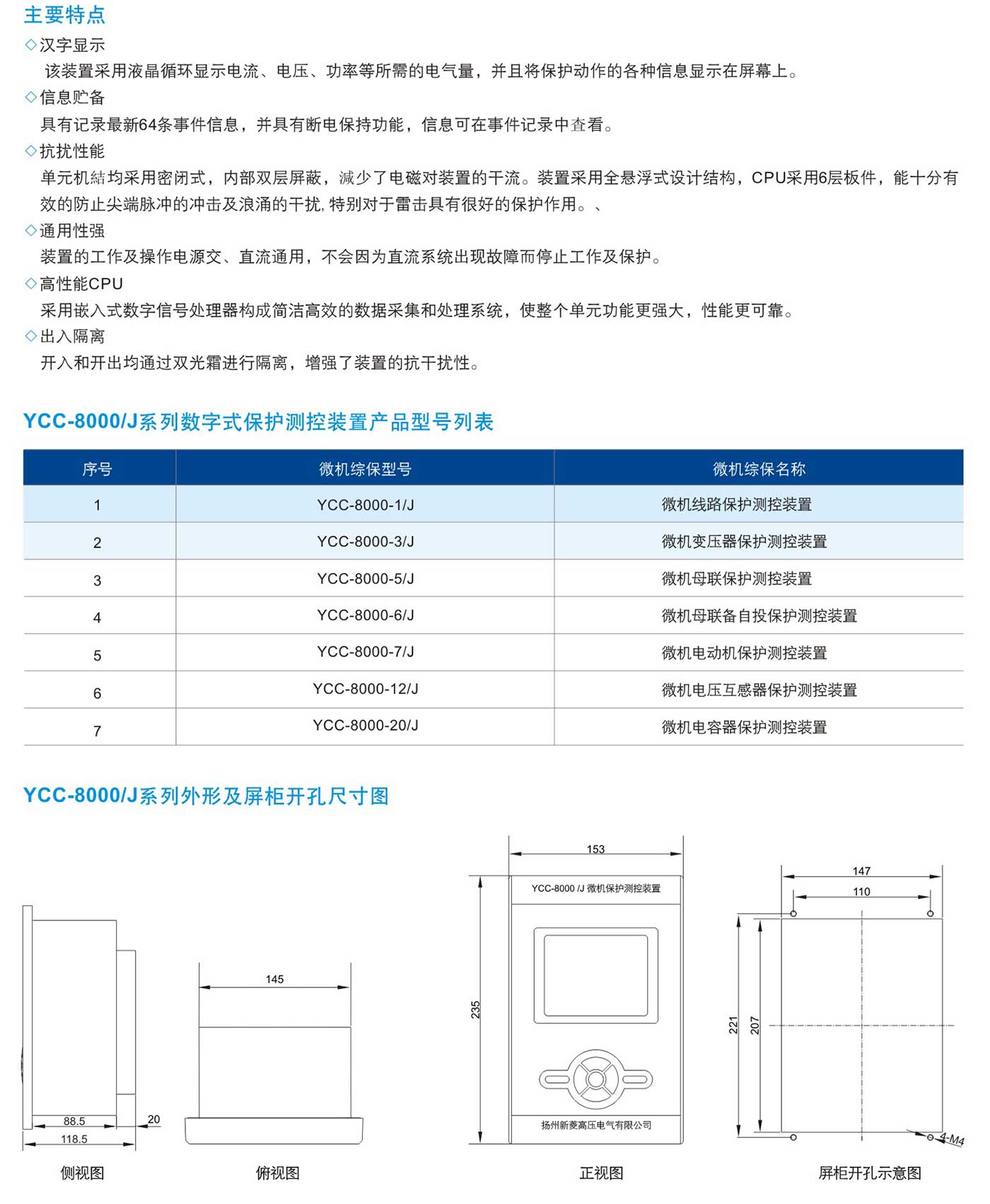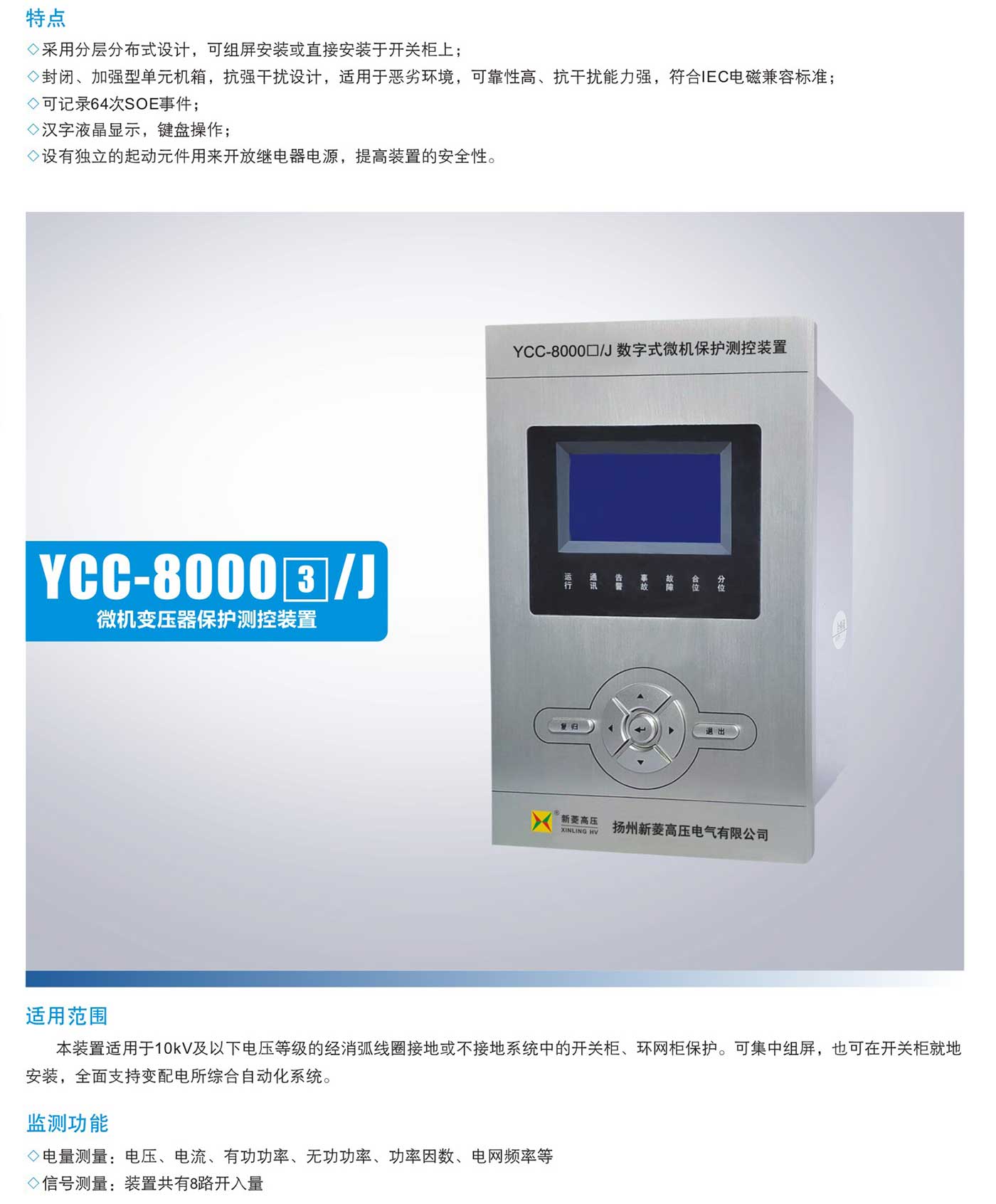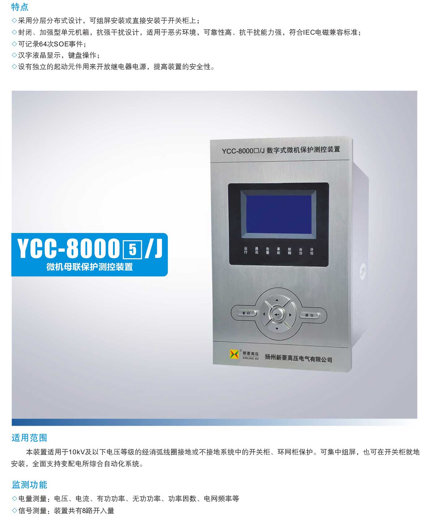YCC-8000口/J户内微机保护测控装置