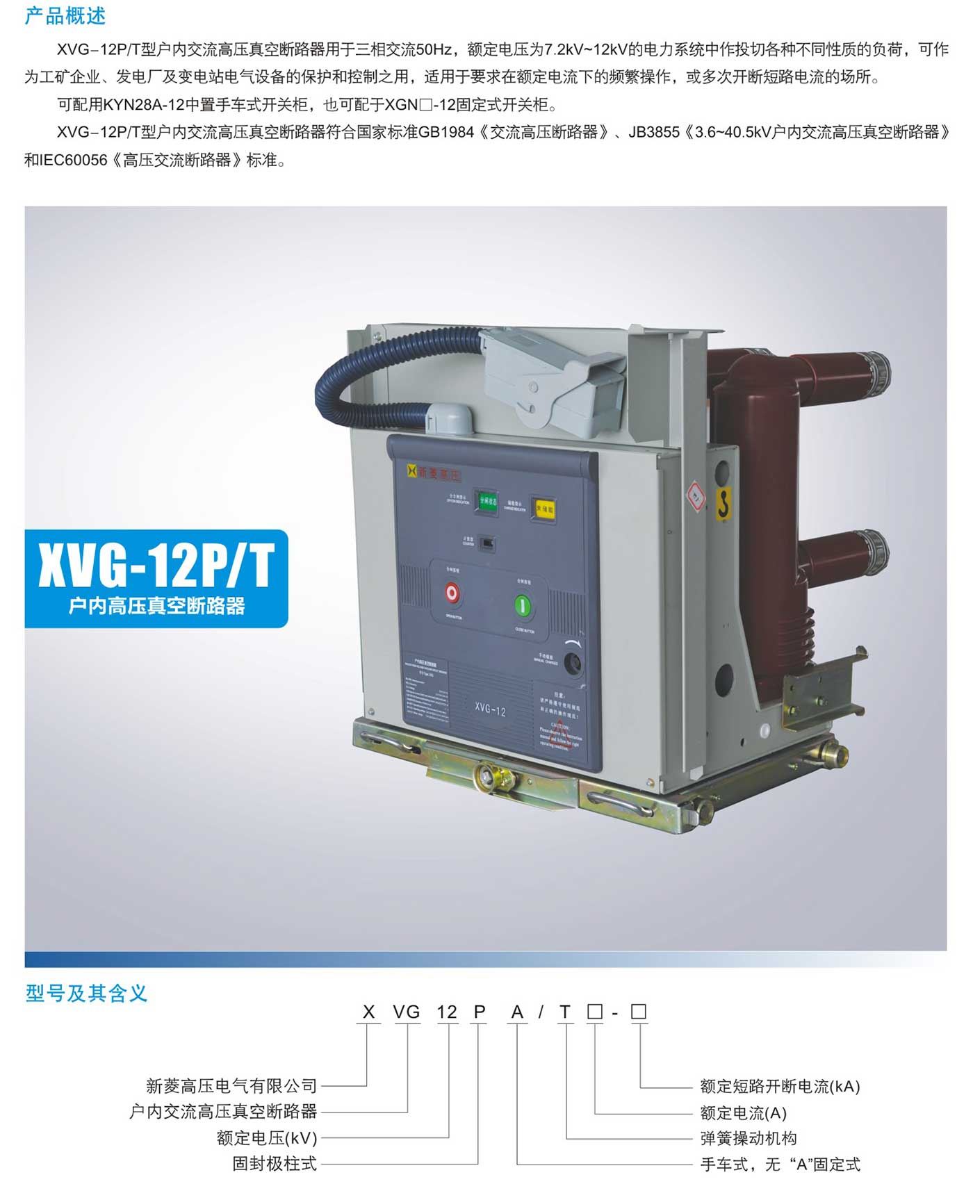 XVG-12P/T型户内高压真空断路器